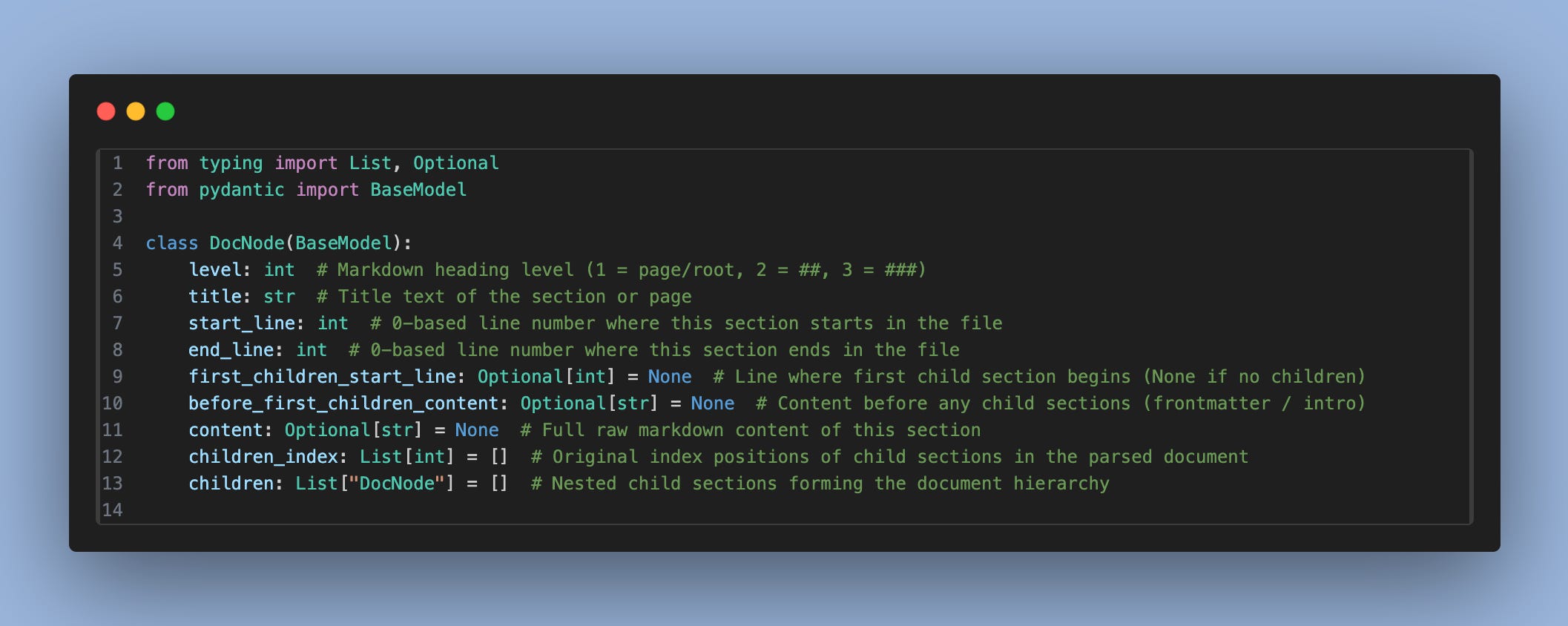 This is the output you will see will be DocNode class, with list of DocNode class in the children list.